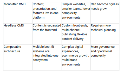 For some organizations, a traditional all-in-one platform still makes perfect sense. For others, especially those dealing with complex content, e-commerce growth, multiple brands, or integration-heavy operations, a more flexible architecture can create real business value. The key is knowing the difference.